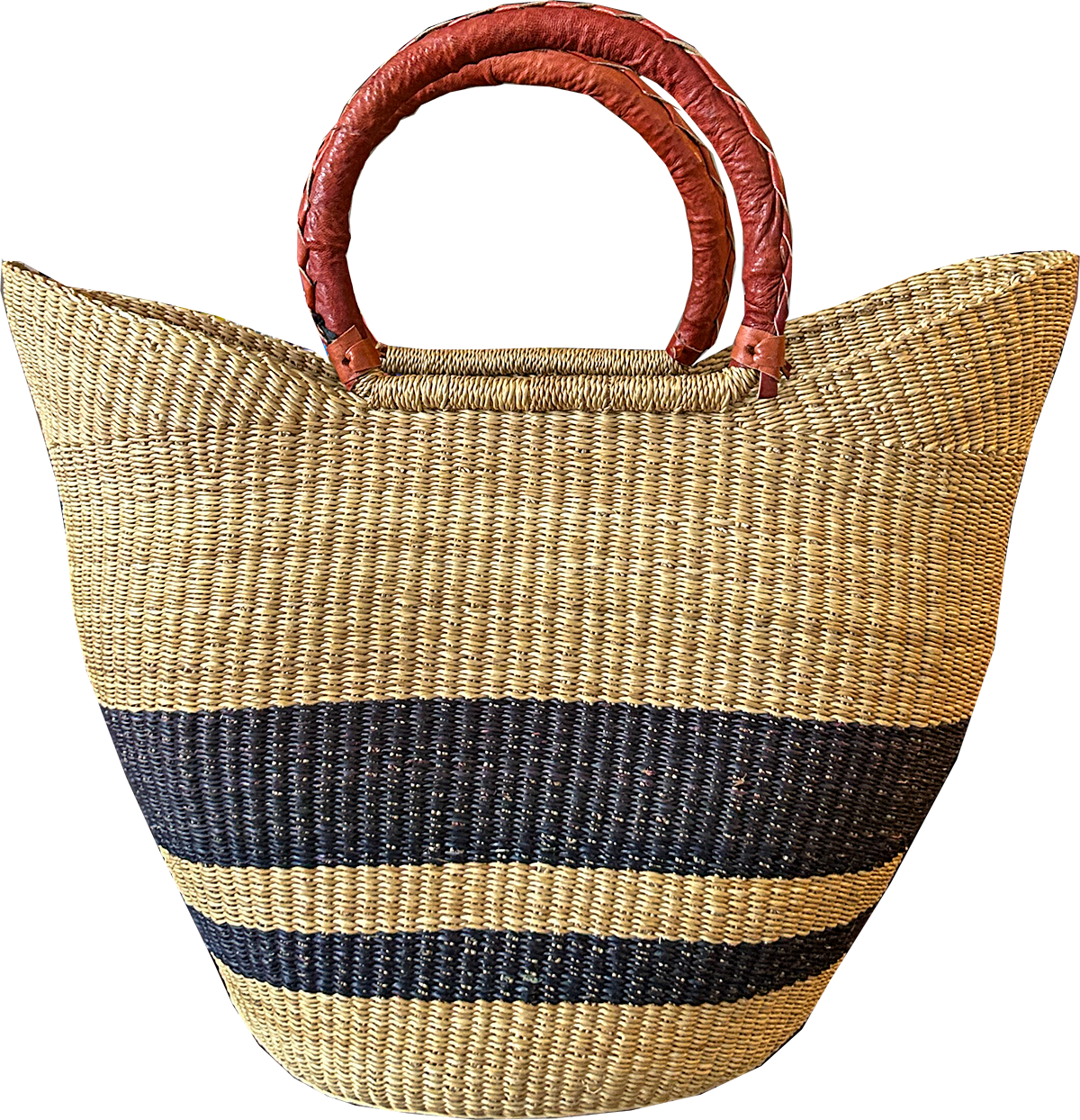 Designed and produced exclusively for the ADE collection, this statement piece is a collaboration between author-designer Nasozi Kakembo and The ADE Bolga artisan Adongo and his team in Bolgatanga, Ghana. Embellished with a leather-bound handle, we designed and produced this basket tote just for you. Each basket takes over a week to complete using skills passed down through generations and shared among community members and expert artisans.