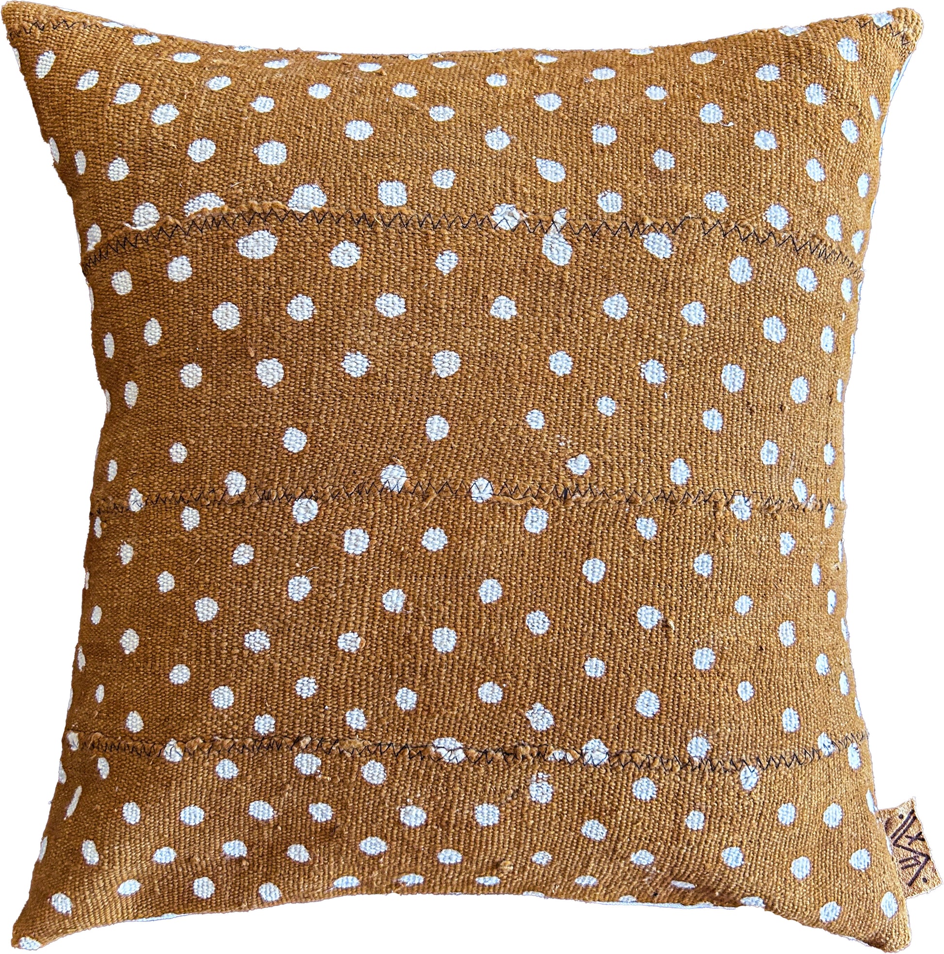 Classic polka dots never disappoint, and this earthy mudcloth variety is no exception! This specific pattern is called tiga farani which means peanut shells. It is associated with women’s work, as women traditionally work the peanut fields in this regain of Africa. Woven and printed in Mali, West Africa, this pillow is assembled and sewn with in USA.